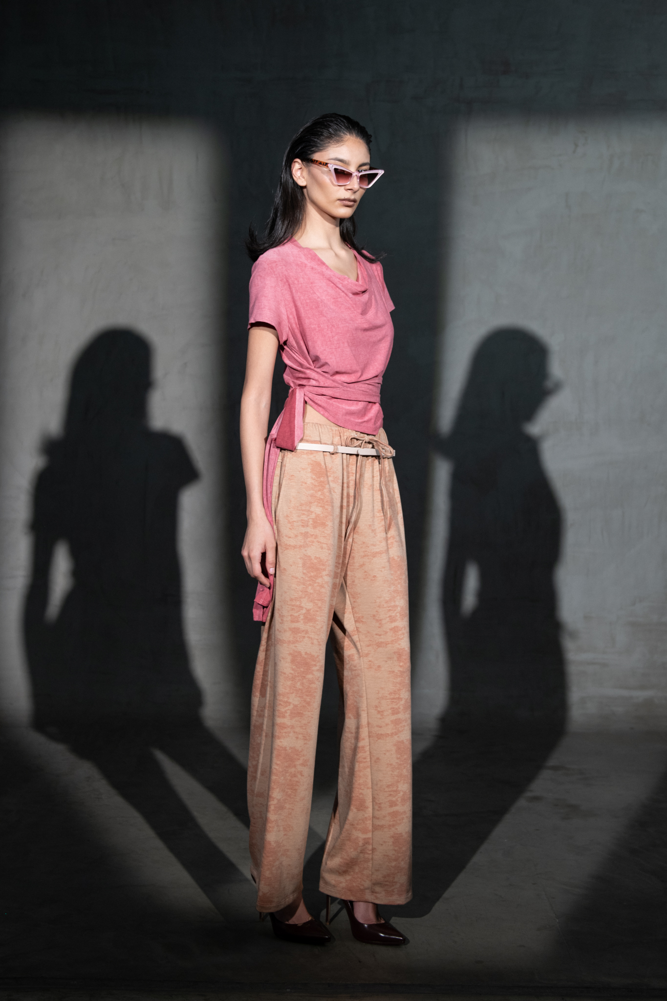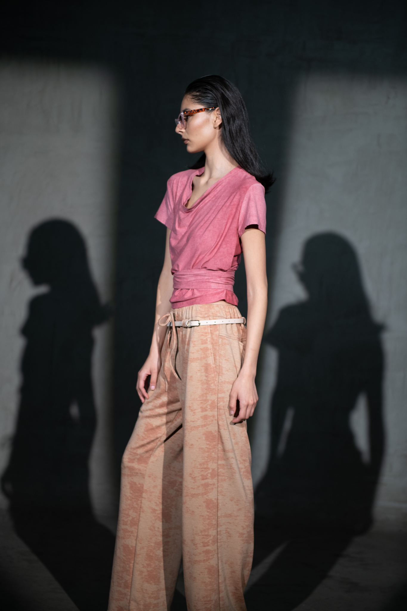 Top manga corta cuello caído con jaretas en costado para amarre.