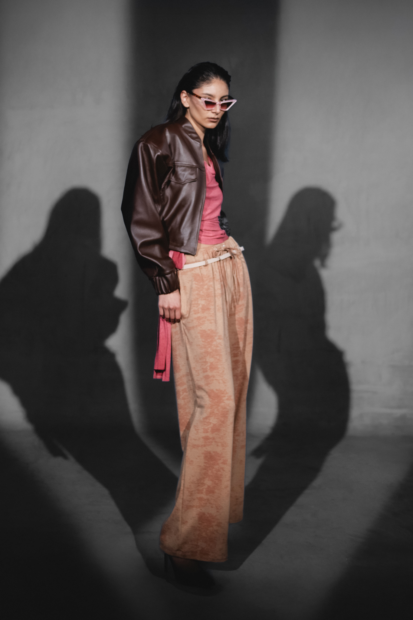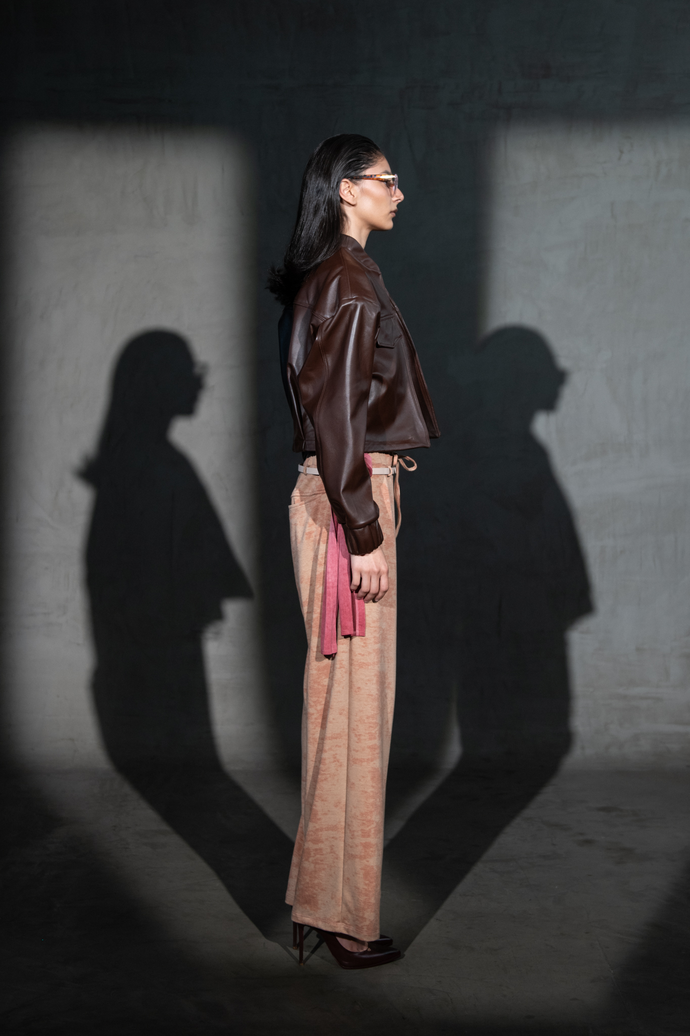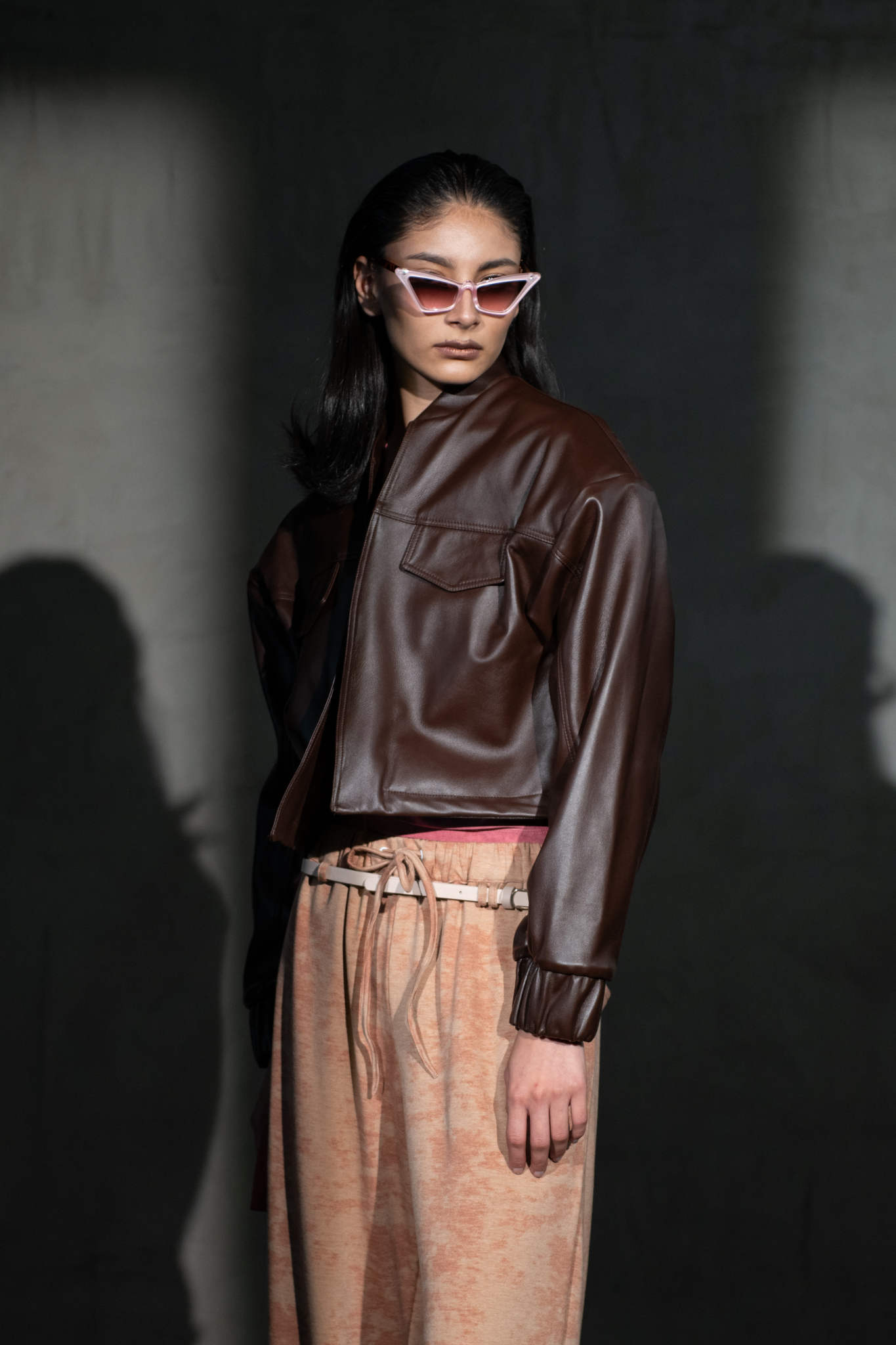 »SDP» Chamarra cropped de piel (Cafe Obscuro)