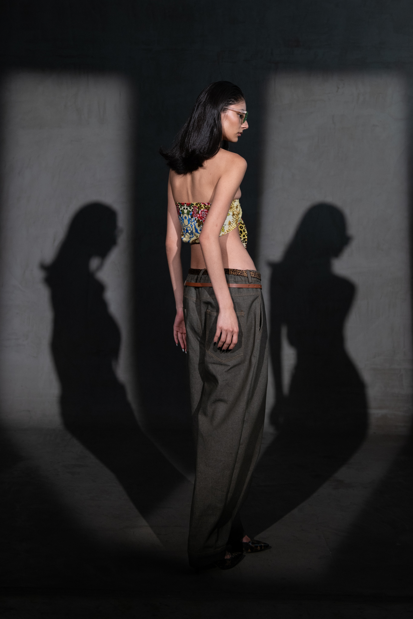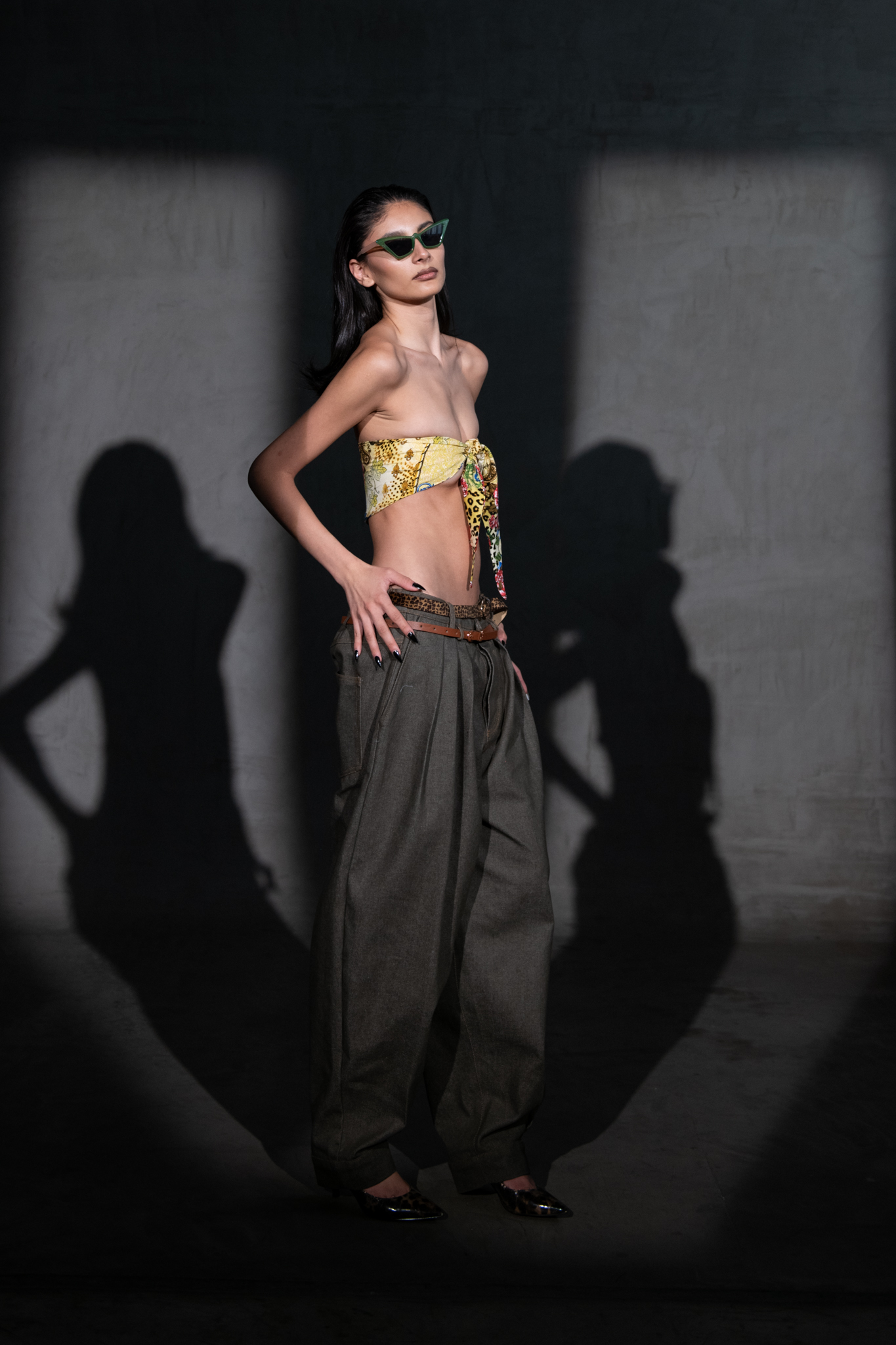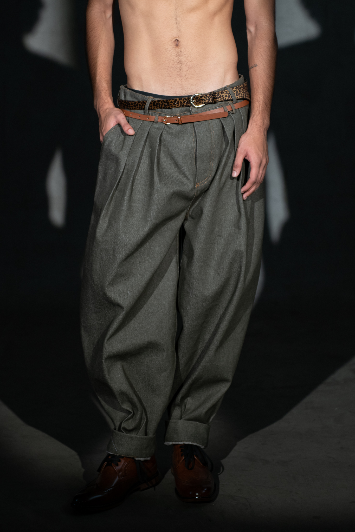 Pantalón de pierna amplia con pinzas frontales y doble set de presillas para multiples cintos. Bolsillos frontales y traseros de parche. Botones cultos para cierre. CINTOS NO INCLUIDOS